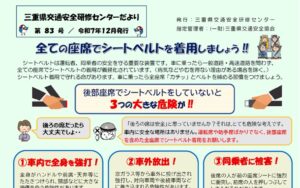 ○ 雨天時の事故を激減させる役立ち情報 ○ 知っておきたい応急手当 令和7年6月発行 発 行 : 三 重 県 交 通 安 全 研 修 セ ン タ ー指 定 管 理 者 : ( […]